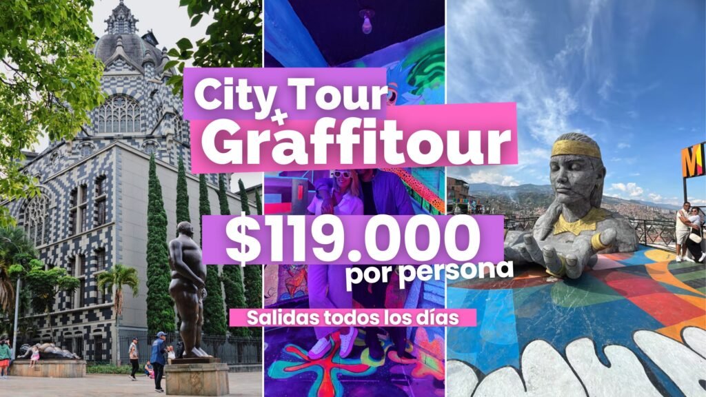Es una experiencia que combina arte, cultura, historia, baile y mucha música, mostrando la transformación social y cultural de la ciudad. Cada lugar que visitarás te sorprenderá: desde las imponentes esculturas de bronce en la Plaza Botero, hasta los coloridos graffitis y expresiones urbanas de la Comuna 13, uno de los símbolos de cambio más reconocidos a nivel mundial.