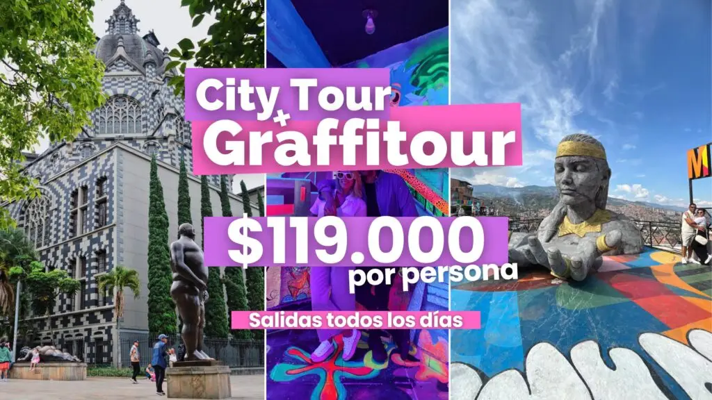 El precio del City Tour + Graffitour es de sólo $119.000 por persona, es el más económico que encontrarás en la ciudad de Medellín y la verdad no tendrás que preocuparte por nada porque el tour lo incluye todo: transporte, almuerzo y la visita a los lugares más representativos de Medellín.
